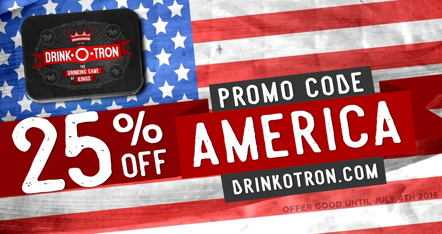 Travis Blain June 30, 2016 4th of July Sale! Travis Blain June 30, 2016 Happy Birthday America! We're celebrating by offering 25% off your order at Drinkotron.com. Just use Promo Code: AMERICA